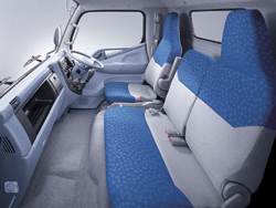 The Mitsubishi Fuso Canter is a amazingly wide truck with a very spacious cabin that has enough space for three persons to sit.  It is comfortable to drive, and the the driver has a wide all-round view.  The Fuso Canter is a forward-control vehicle; this design gives the canter an excellent turning circle.  Thus the Canter has superb maneuverability. You can easily negotiate traffic amidst tightest corners in congested urban areas – with heavy load to shift.