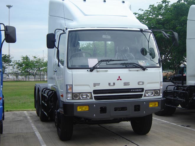 MITSUBISHI FUSO FN, a heavy truck with 10 wheels and a tractor, suitable for a big business. Total load capacity is GVW 25 and GCW 45 tons.